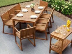 6-istuttava Ulkoruokailuryhmä Eukalyptuspuutaso Tekstiilituolit Beige GROSSETO