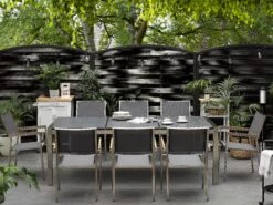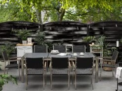 8-istuttava Ulkoruokailuryhmä Poltettu Graniittitaso Tekstiilituolit Musta/valkoinen GROSSETO